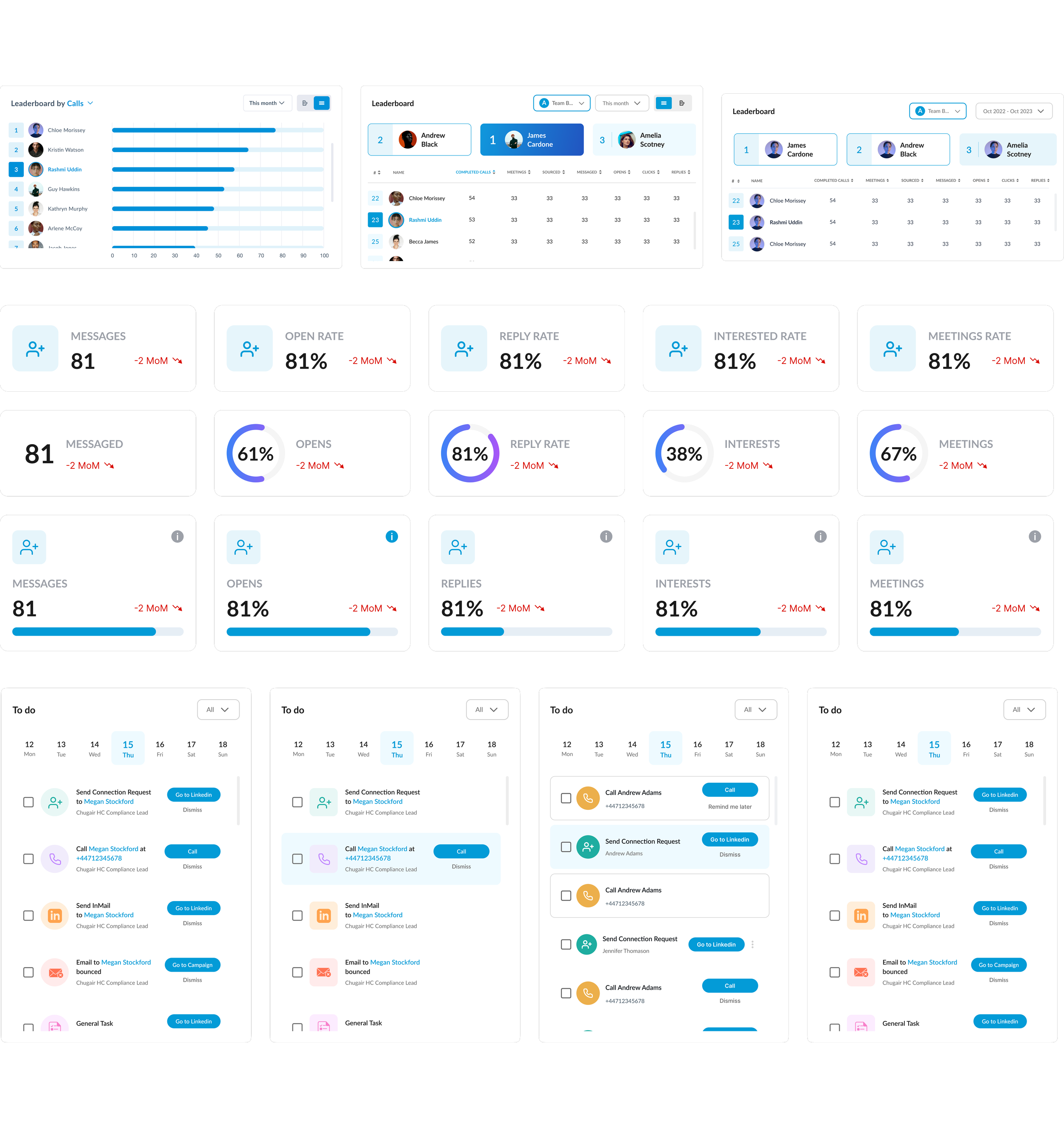 As they scroll, data unfolds in a structured, intuitive way — charts tell a story, sections naturally guide attention, and insights feel within reach rather than buried. Each chart now has its own dedicated date filter, giving users the flexibility to explore datasets across different time periods without losing clarity or context. For more advanced workflows, recruiters can also switch between multiple campaign views and even access other team members’ dashboards, enabling quick comparisons across individual, team, and company-wide performance.