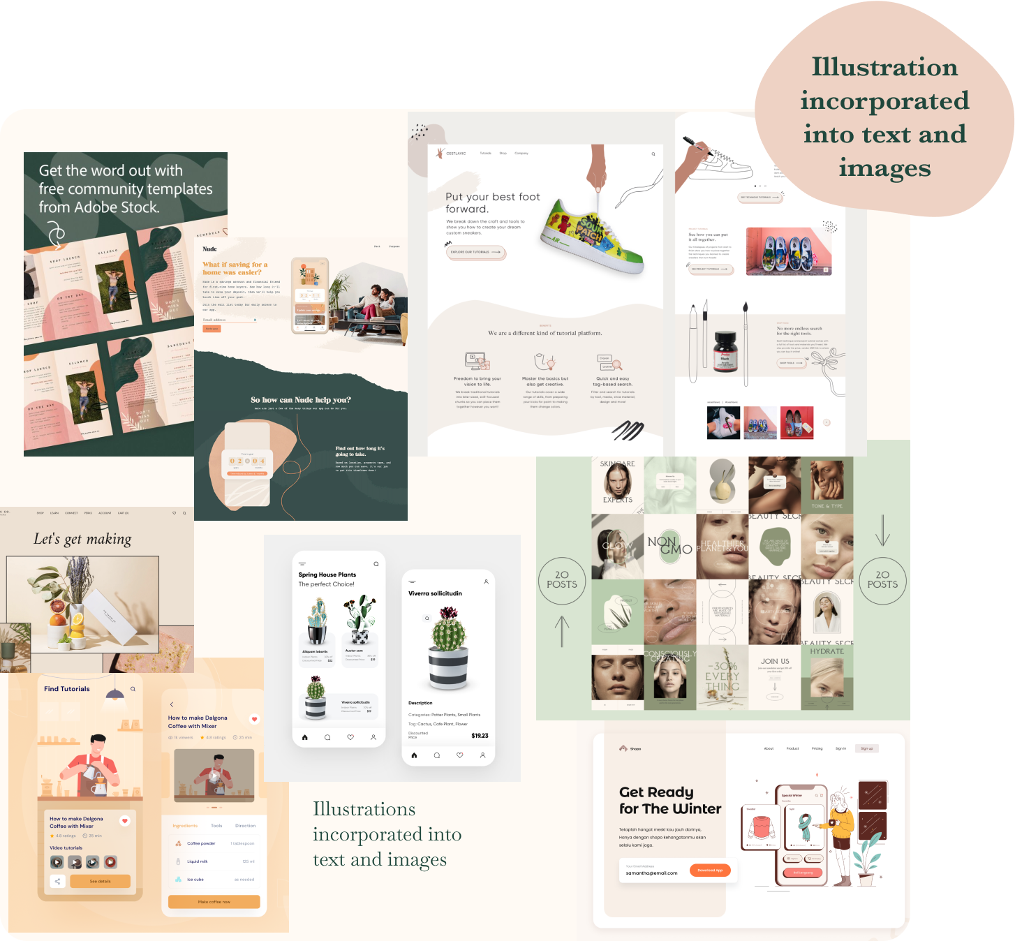 As I continued to build mood-boards, I found that simple illustrations were often used to frame call to action areas and help break up bodies of text. They helped create an engaging interface that is informal and friendly whilst ensuring the content remains digestible.