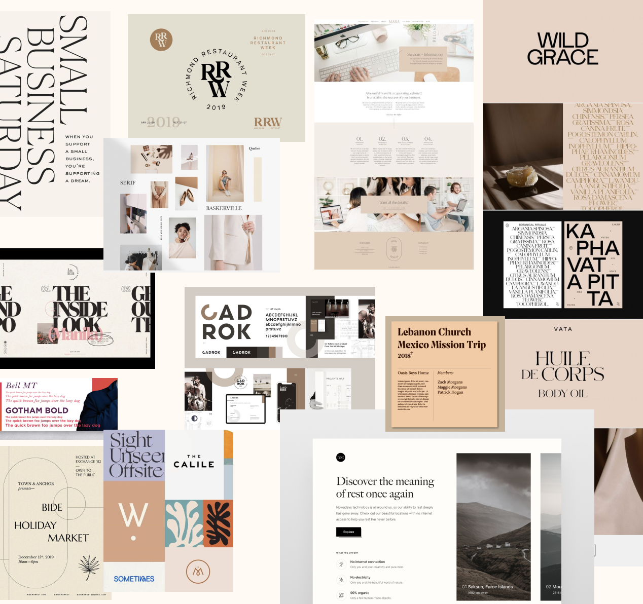 Serif fonts for headers and subtitles help create classic look and feel with rustic undertones, reminding the user of natural & organic products the company uses and their values regarding sustainability.